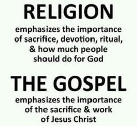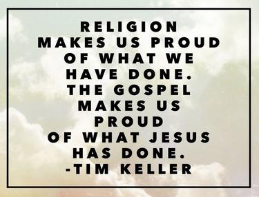 Tim Keller stated “religion” tells you what you need to do in order to be saved. Whereas in Christianity, you are saved by believing in the work of Christ alone. Christianity is the only religion in the world which does not require some sort of obedience to laws or ordinances, works, or moral conformity in order to qualify for eternal life. All other religions require some sort of personal effort other than believing in order to earn eternal life and this is why the message of the gospel is so radically different.